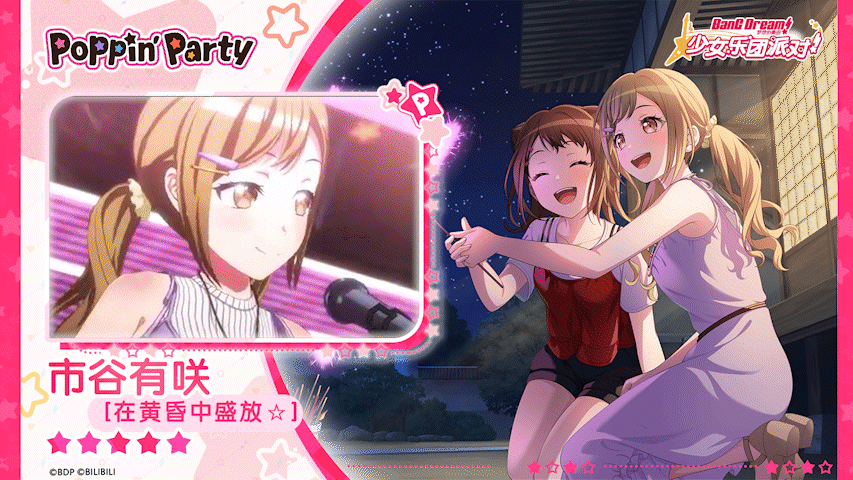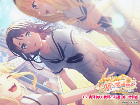 本期活动招募中以下新成员将加入卡池,活动期间出现概率提升♪★5 奥泽美咲[我所不知道的]★5 北泽育美[笑容灿烂的国际交流]★4 弦卷心[青梅竹马是留学生]