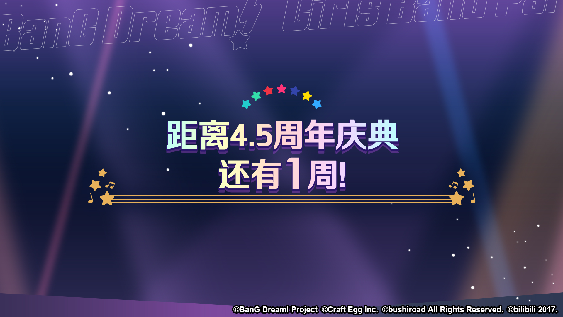 各位亲爱的BanG Dreamer: 为迎接4.5周年的到来,11月1日起,游戏内将开展「4.5周年开启纪念倒计时登录奖励活动」!每日登录都可以获得乐队专用技能练习券,共计可获得7张——所有乐队的乐队专用技能练习券!★活动时间★1日:11月1日0:00~11月1日23:592日:11月2日0:00~11月2日23:593日:11月3日0:00~11月3日23:594日:11月4