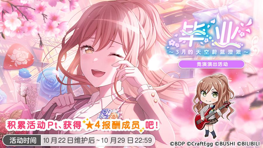 参与活动积累活动Pt,可以获得全新活动报酬成员★4 白鹭千圣[毕业]哦!活动将于10月29日22:59结束,还请留意~ 今后也请多多支持《BanG Dream! 少女乐团派对!》!