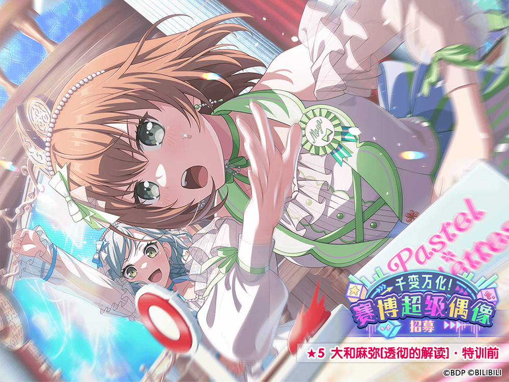 本期活动招募中以下新成员将加入卡池,活动期间出现概率提升♪★5 大和麻弥[透彻的解读] ★5 白鹭千圣[看一眼就懂啦!] ★4 丸山彩[错答亦是趣味所在?]