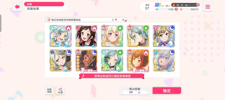用活动的券在新池来了一发10连,结果挺欧的然后每日三抽也出了一个五星,(虽然是重复的)