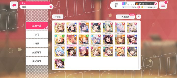之前一直打曲子,没养角色