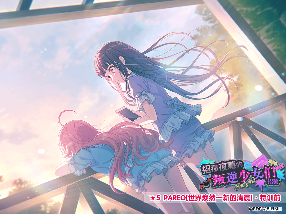 本期活动招募中以下新成员将加入卡池,活动期间出现概率提升♪★5 PAREO[世界焕然一新的清晨]★5 CHU²[喜欢与讨厌]★4 LAYER[倾注爱意]