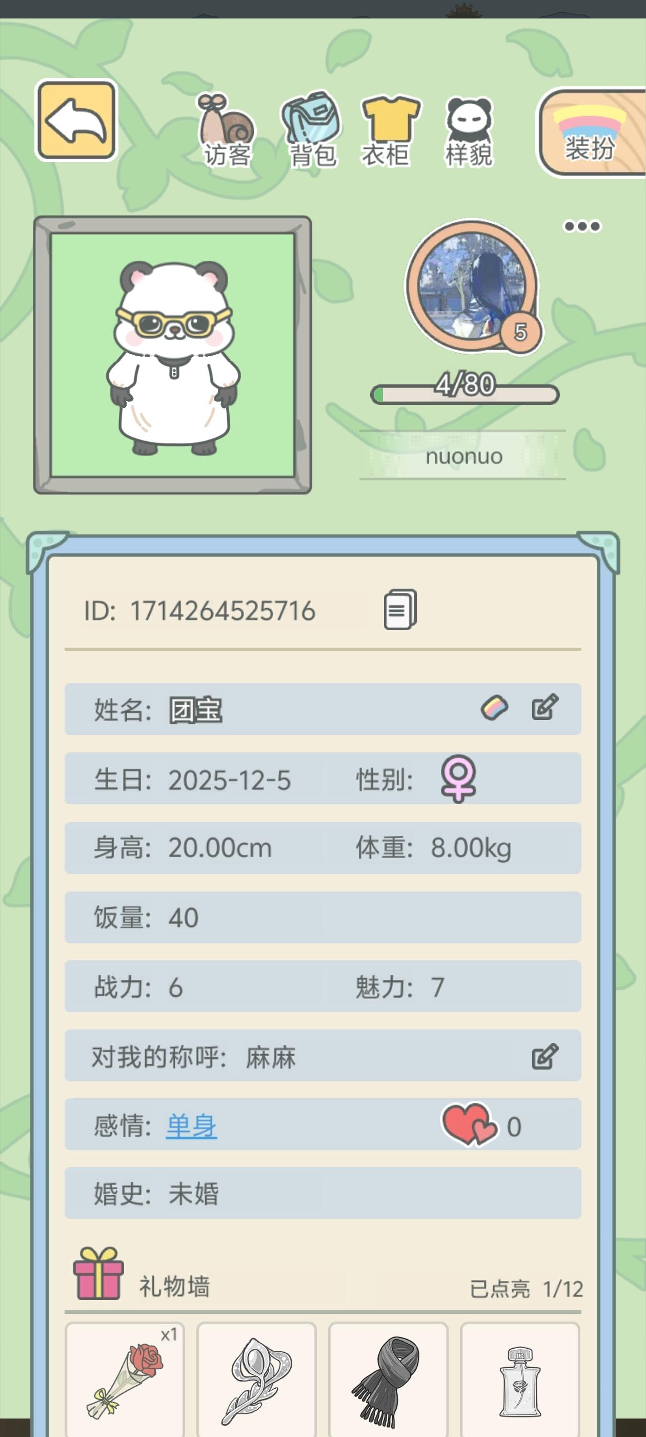 我的崽崽还在睡觉~嘻嘻,游戏总体来说画风还可以,前期钱不够买东西,可以在娱乐玩小游戏来让崽崽心情变好,剩下一笔买零食的钱,后期钱多了想咋造咋造,最开始七天的的那个我没有抓住机会,所以没有成功把送的那些装饰拿到手,最后~给崽崽征个老公呀~😁
