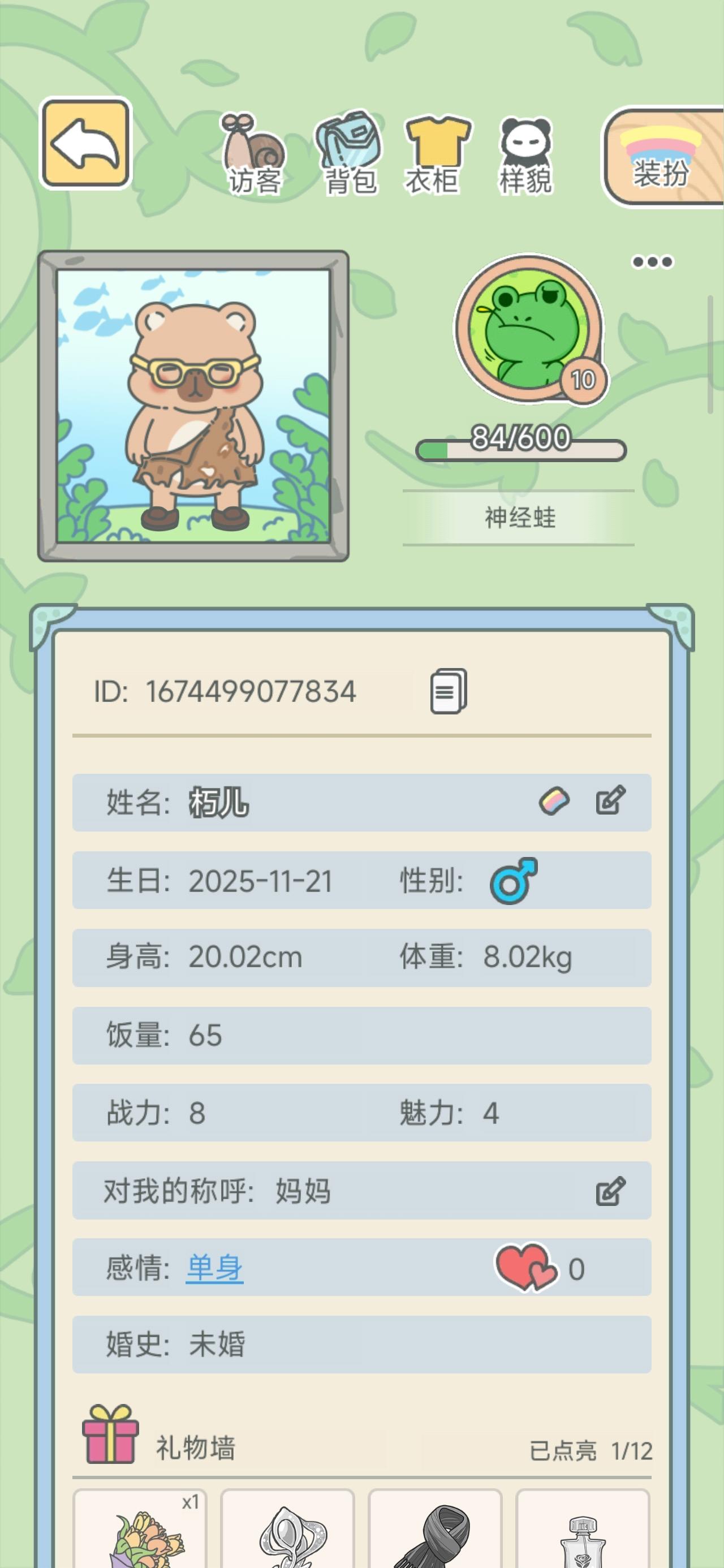我不知道有谁能看上我的小卡皮巴拉了,关于这个恋爱性别,游戏是不支持同性恋爱的,而游戏里面很多都是女崽崽,我的小卡皮巴拉更难找对象了。