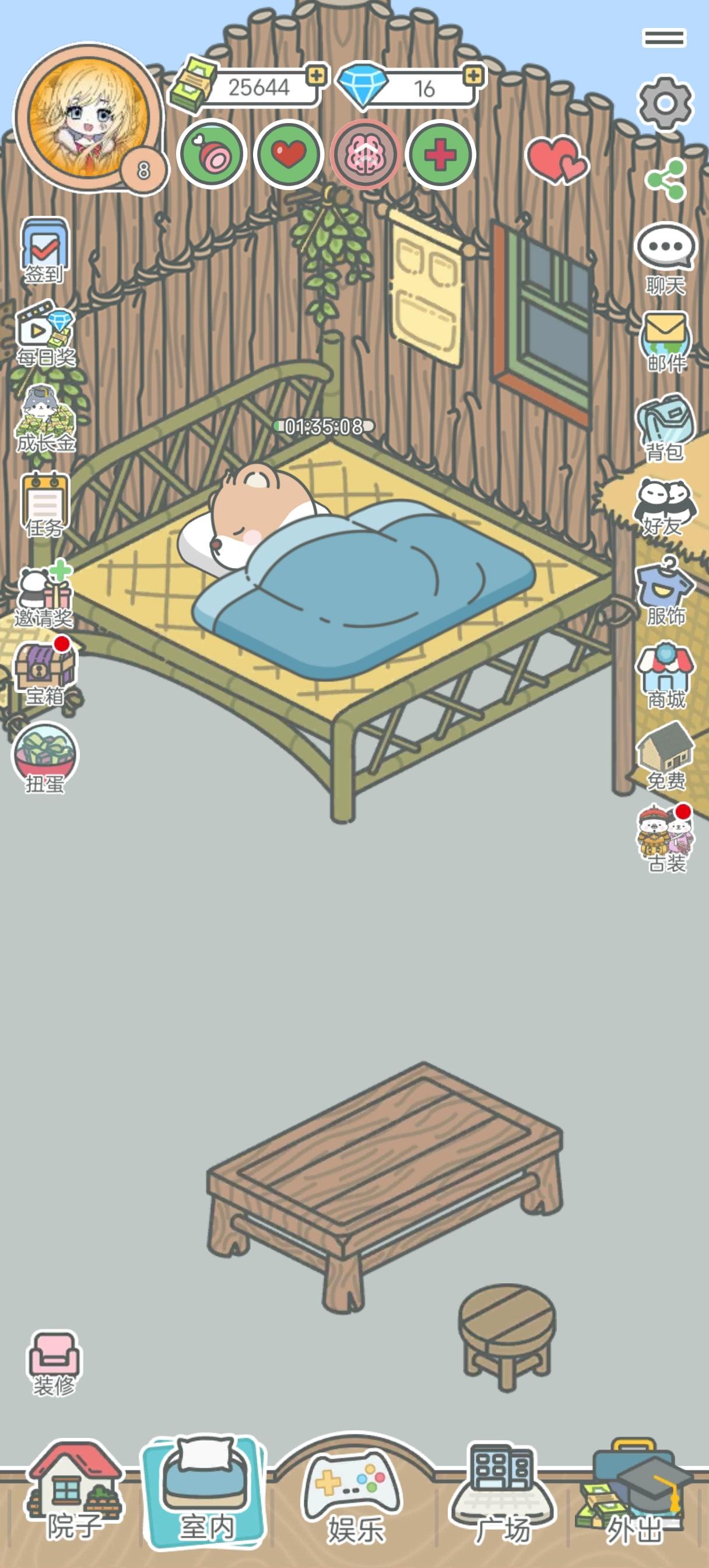 游戏还是很好的,也没有逼氪。漂亮的床和草席都是需要相同时间恢复睡眠的。我给孩子买了好看的床和枕头被子、餐桌,这些都是我每天做做任务拿钻石买的,不充钱,努力做任务也可以让孩子的生活慢慢变好。