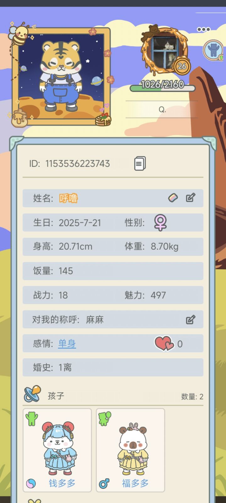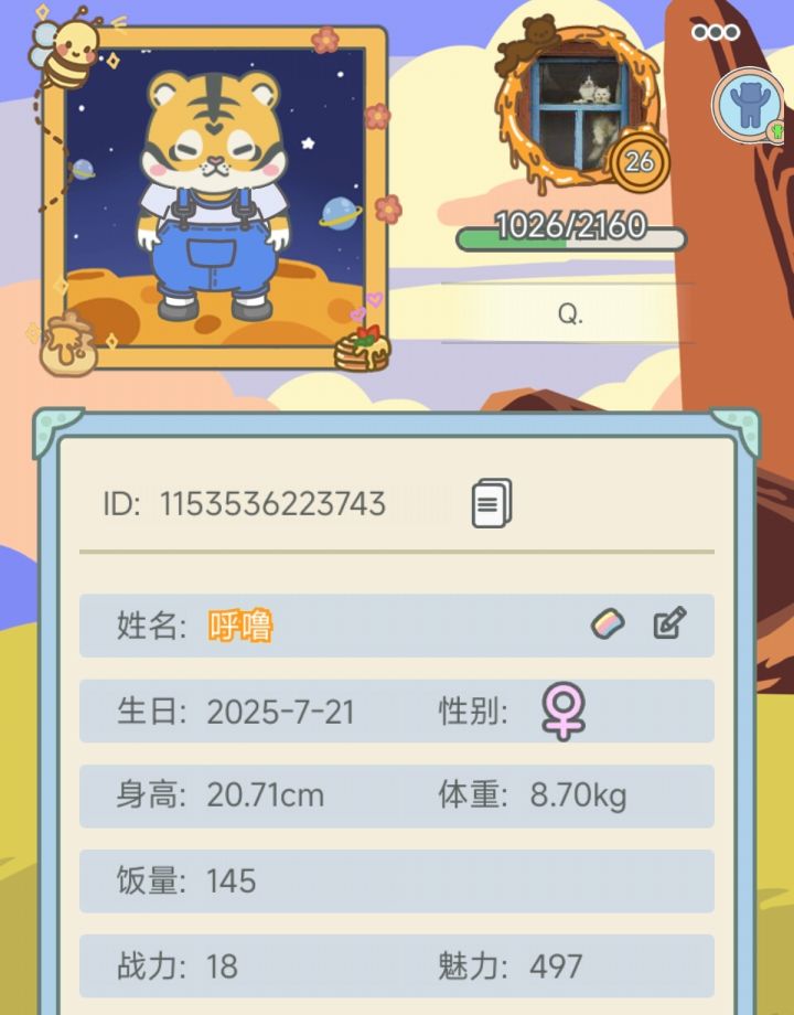 2025年11月19日,是我开始玩这个游戏的第一天,也是我的最爱的小熊崽崽诞生的第一天,最初我没有想过这个游戏可以玩到现在,但是随着她去上学,去工作,我也找到了可以一起玩游戏的午午妈妈,两个崽崽们也终于在大年初一这一天正式在一起啦,而我经常会因为装扮这个小房子把手上的钻石花的一干二净,也经常因为要更改屋内的摆设把午午的粉餐桌和小粉床收起来,然后我就放不出来了,马上狼狈的爬回QQ找午午妈妈,拽她上线