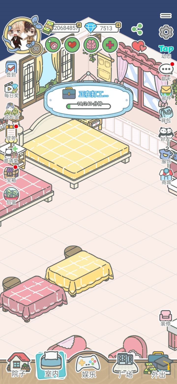 2025年11月19日,是我开始玩这个游戏的第一天,也是我的最爱的小熊崽崽诞生的第一天,最初我没有想过这个游戏可以玩到现在,但是随着她去上学,去工作,我也找到了可以一起玩游戏的午午妈妈,两个崽崽们也终于在大年初一这一天正式在一起啦,而我经常会因为装扮这个小房子把手上的钻石花的一干二净,也经常因为要更改屋内的摆设把午午的粉餐桌和小粉床收起来,然后我就放不出来了,马上狼狈的爬回QQ找午午妈妈,拽她上线