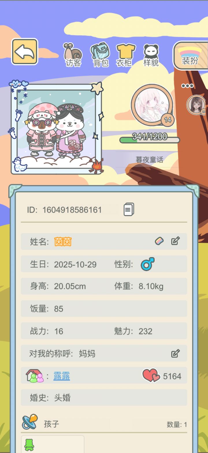 2025年11月19日,是我开始玩这个游戏的第一天,也是我的最爱的小熊崽崽诞生的第一天,最初我没有想过这个游戏可以玩到现在,但是随着她去上学,去工作,我也找到了可以一起玩游戏的午午妈妈,两个崽崽们也终于在大年初一这一天正式在一起啦,而我经常会因为装扮这个小房子把手上的钻石花的一干二净,也经常因为要更改屋内的摆设把午午的粉餐桌和小粉床收起来,然后我就放不出来了,马上狼狈的爬回QQ找午午妈妈,拽她上线