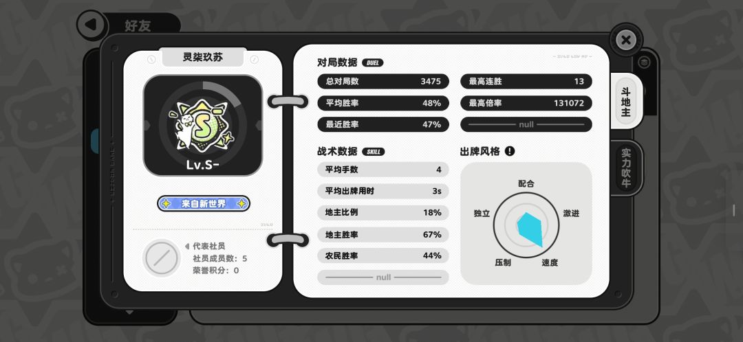 智游斗地主也称人机斗地主,因为你碰到80%以上的对局都是人机,经常会碰到天胡牌地主被人机抢走或者明明能赢的局被人机送掉,而且你手里牌的好坏跟你的最近胜率有很大关系,当你最近胜率超过70%后抽到烂牌的概率就大幅增加,同理当你最近胜率低于50%的时候就更容易抓到天胡牌,这应该是平衡游戏胜率的机制。 所以可以得出一个结论,当我们可以稳积分第一的时候,不妨送人机一些低倍率能赢的局,不影响自身积分排名的同时