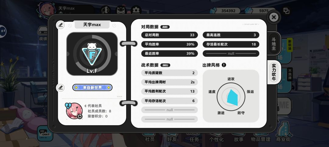 游戏特点是免费(永远0氪),不知道的可以看一看官方TapTap主页的游戏介绍。所有角色都有9个表情包和剧情,婚2皮,还有中日双v 每个角色的不同牌型有不同语音 首先是兑换码,第一张图 在设置这里,第三行 社长~我很高兴见到你!请收下这些见面礼吧~ 兑换码:huanqingceshi 庆祝Q群破千人礼包码:qianrendejiban 公告礼包码:zhiyoudoudizhu 🎉🎉🎉 然后是分享码,