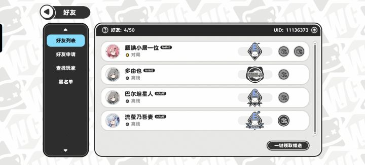 我刚开始玩级别低,玩了一阵子还一个好友都没有,话说这游戏好友也太难加了\(`Δ’)/ID11109650