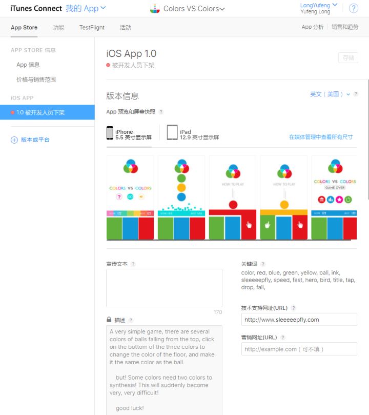 去年四月份我做了个叫《Colors VS Colors》的游戏发了苹果,后来感觉不是很好玩我就把它下架了,也没做中文版,跟这个的玩法几乎一模一样,只不过我的是改变中间横条的颜色,上面掉下来的是球哈哈哈~~~~这个就叫创意撞车吧。