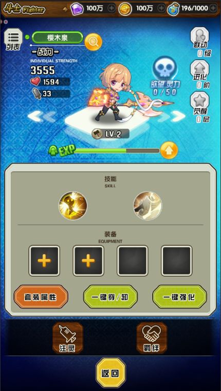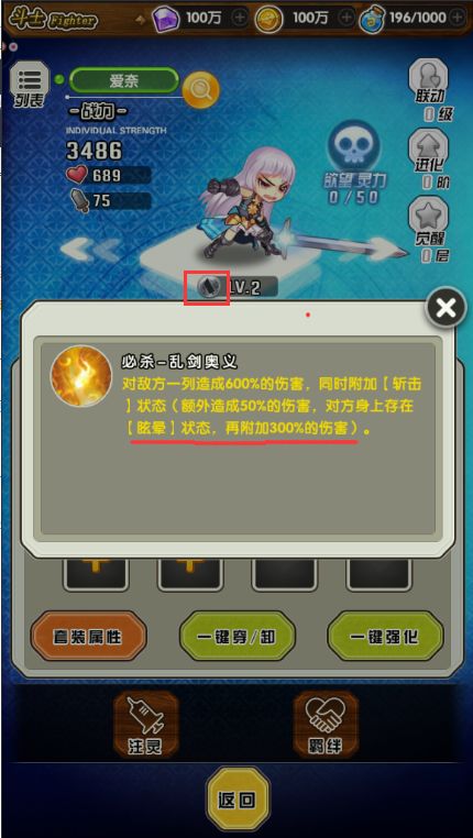 由于游戏摒弃了一直以来的力敏智体系,使用【风雷水火光御伤冰】这8种属性代替,使游戏可玩性大大增强,今天就来看下初期4个女斗士要怎么搭配才能打出高伤害吧。首先初期我们会的4个女斗士属性分别为无属性*2,伤属性*1,御属性*1,就是说,我们只能从有属性的2个女斗士身上着手。首先我们可以看到爱奈【伤】的大招描述,对眩晕中的敌人造成300%的附加伤害;然后在看一下樱木泉【御】的大招描述,帮队友分担伤