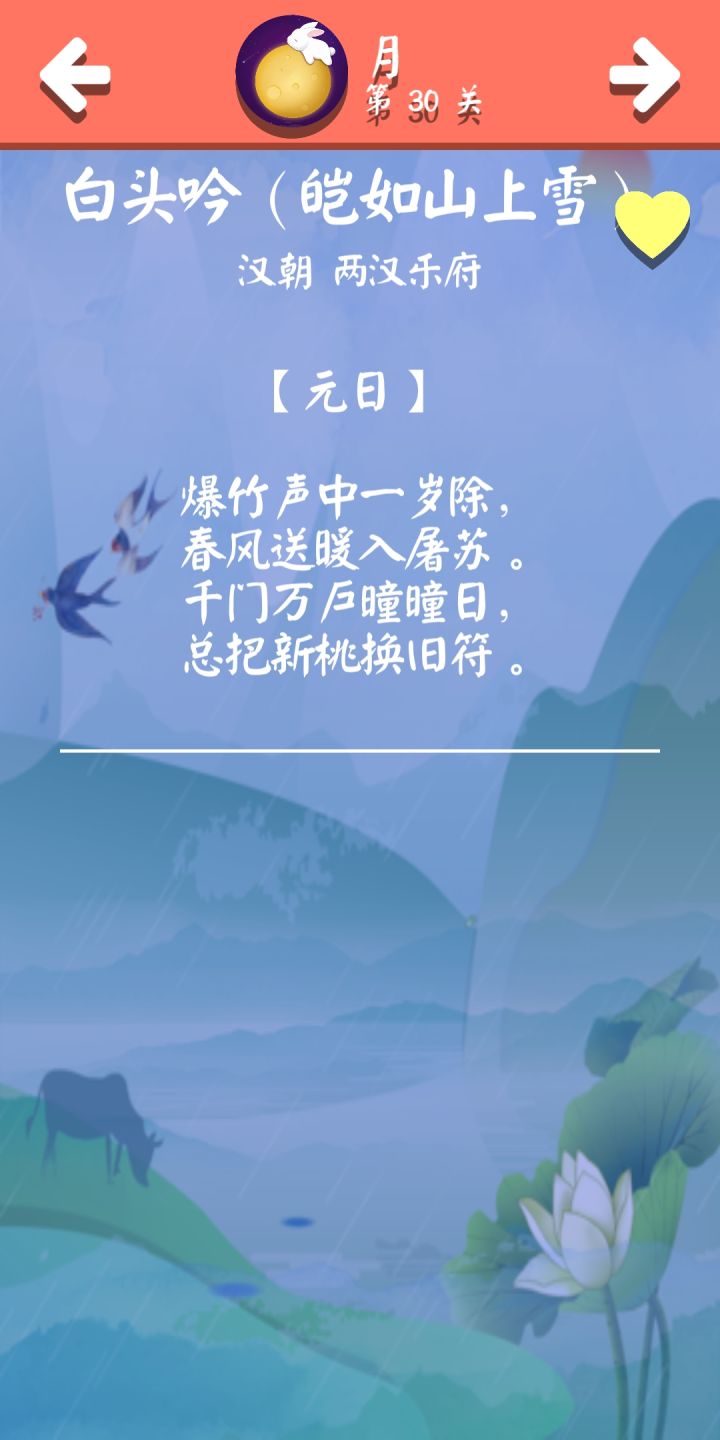 这个游戏挺良心的,每首诗都配了详尽的赏析,能见到这样的游戏真的很开心。