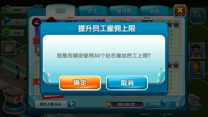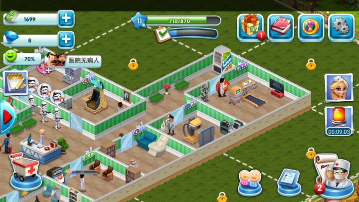 第一次玩到让我只玩了5分钟就让我感觉不磕金玩不下去的游戏…全是氪金点!招了4个医生招第5个就要钻石扩充,想多招个扫地阿姨要扩充!想招个会x光的医生,一次只有4个医生可选,其中一个还是600钻才能买的,6小时更新一次,用钻刷了7次愣是一个会X光的都没…布置的自由度约等于0,房间的大小固定,门的方向位置固定,内置物品固定!这是系统固定的25级的号“好友”你问我还有什么?玩了5分钟就实在受不了了,