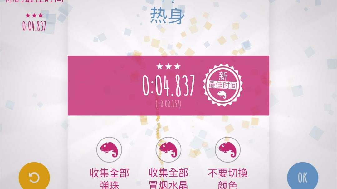 你还有一个不要切换颜色的目标没有完成,你完成之后就有了