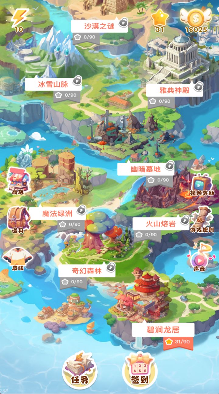 随着挑战难度的逐步攀升,总会遇到那些让人抓狂的关卡,有时爆肝一整天都无法通关。这时,合适的道具可能会成为改变局势的关键。那么,如何获取这些道具以助你顺利通关呢?签到如果你选择用购买的方式获得道具,就需要一定数量的金币。获取金币最便捷的方式是每日签到,签到按钮位于主页下方,只需动动手指点击签到,就可以轻松获得金币。连续签到7天还会获得额外丰厚的奖励。任务主页下方另外设有任务系统。完成指定任务