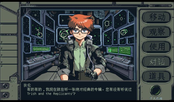 进入游戏,首先第一最直观的感受就是整体画风上的怀旧风显著,游戏内给我们提供了三种可供选择的画风,分别是工作室原创,昭和之风与全彩模式,工作室原创的画风与昭和一样都是偏绿色的古早风,但昭和之风则是工作室致敬日本昭和时期科幻所作的特有画风,整体上的人物风格非常有老时代的沉浸感,仿佛回到了过去那个街机游戏盛行的时代,那个时代像素风的场景与人物放到这个大作频出的时代并不会显得捉襟见肘,而就像吃惯山珍海味后突然出现的清淡小菜,自有属于自己的一番风味值得细细回味,值得一提的是,工作室的原创画风与昭和和全彩模式下的人物立绘也有所不同,从这些细节上也可以看出工作室的用心
