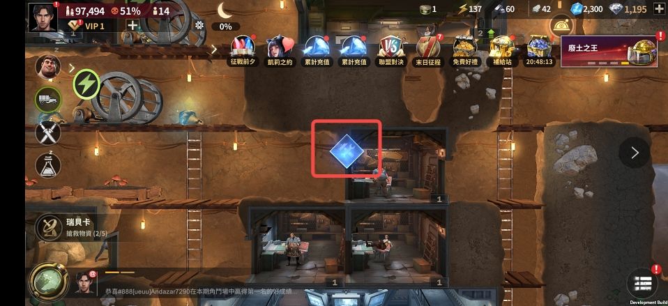 我们推荐的早期目标! 1 以控制中心 7 级为目标 2 在达到控制中心7级之前,尽可能推进科技研究和控制中心所需的前置建筑升级或建造 3 积极参与现在正在开启的活动 4 收集资源并使用每次直升机所带来的商人 5 有效利用联盟帮助和月光的黑夜加速机制,加快你的建造或研究速度 6 集结盟友占领中立城市,可获得城市的加成属性以及奖励 【初入避难所】 挖地开采并收集资源- 推荐游戏前期尽可能多的去开采土块