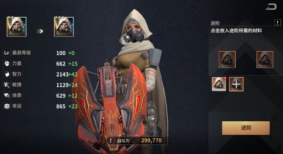 战斗英雄进阶—通过使用英雄海报,任何英雄都可得到升级或进阶。 使用招募券招募时,英雄的基础阶级体现为:优秀战斗英雄是绿色的,稀有战斗英雄是蓝色的,而精英战斗英雄则是紫色的。进阶英雄有助于提升其属性,而且英雄颜色也会随着每次进阶而改变。 这些英雄进阶顺序如下:绿色—蓝色、蓝色—紫色、紫色—橙色、橙色—红色、红色—金色, 金色可进阶至金色1星/2星/3星。 以下是建设英雄进阶所需材料及其数量: