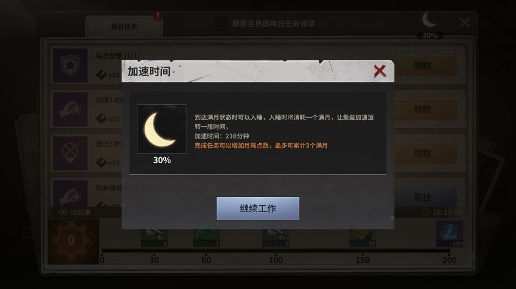 避难所内每天有那些事情可做呢? 【城建】 可通过左侧状态栏快速了解工人工作、训练营训练、实验室研究状态,若队列空闲可点击状态栏立即跳转。 保持队列工作状态,帮助您快速发展避难所。 【战役】 1. 领取探索奖励 探索奖励包含:英雄经验、纪念币,通关站点越多,单位时间探索收益越高。 探索奖励基础仅可累积10个小时收益,每次登录可先领取离线期间的累积收益。以免达到累积时间上限,探索奖励停止累积。 2