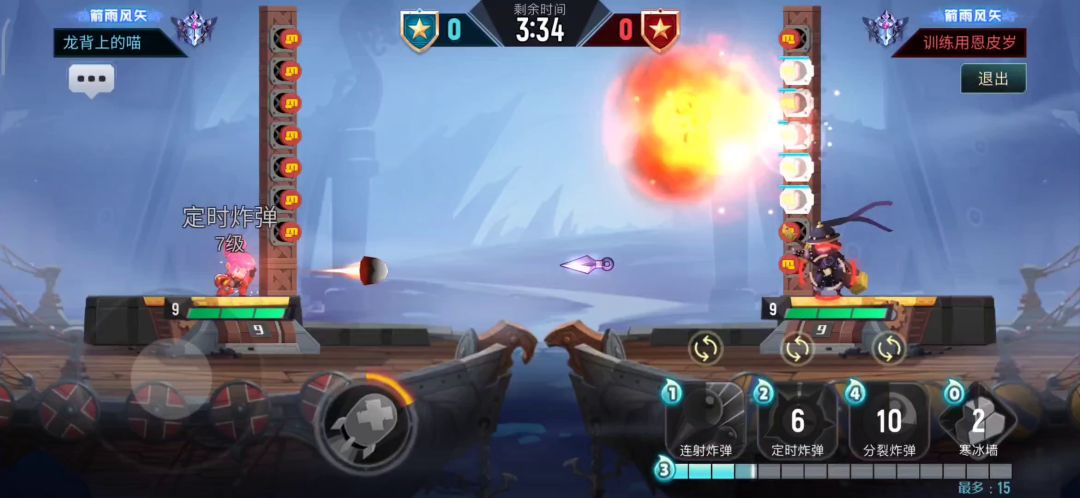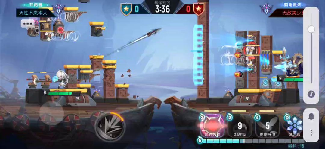 这种情况我碰见过,自动发射箭还没过河就往天上飞了