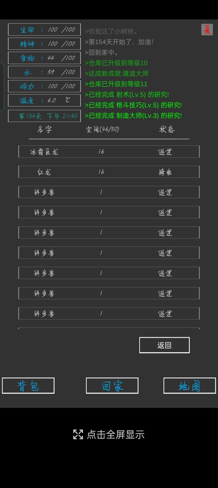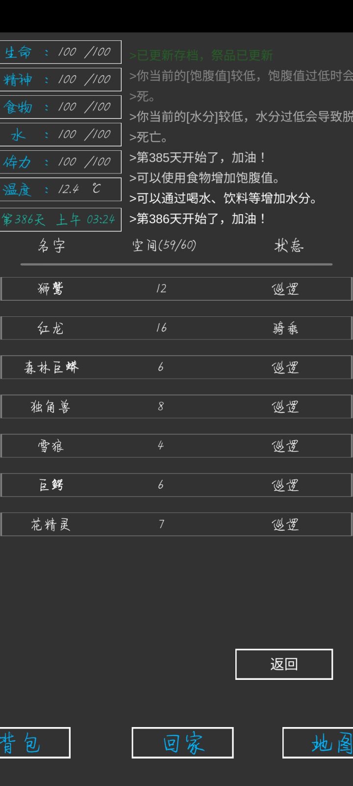 所以我也来分享一下自己的攻略1有人说橙色矿石很缺,需要祭坛换,然而事实上最后五大地图探索完能出一大堆,根本用不完2有人说灵魂石很缺,但其实有办法刷的,在晚上,体力用完的情况下,一直点需要体力的工作,他会提示你体力不足,但是一直点的话是可以出幽灵的。并且操作过程中游戏时间不变,食物,水等属性都不会减少,并且幽灵血薄,基本近战一刀秒,不会扣血,顶多被偷袭稍微扣一点血,等于是仅拿极少量的被偷袭的血白