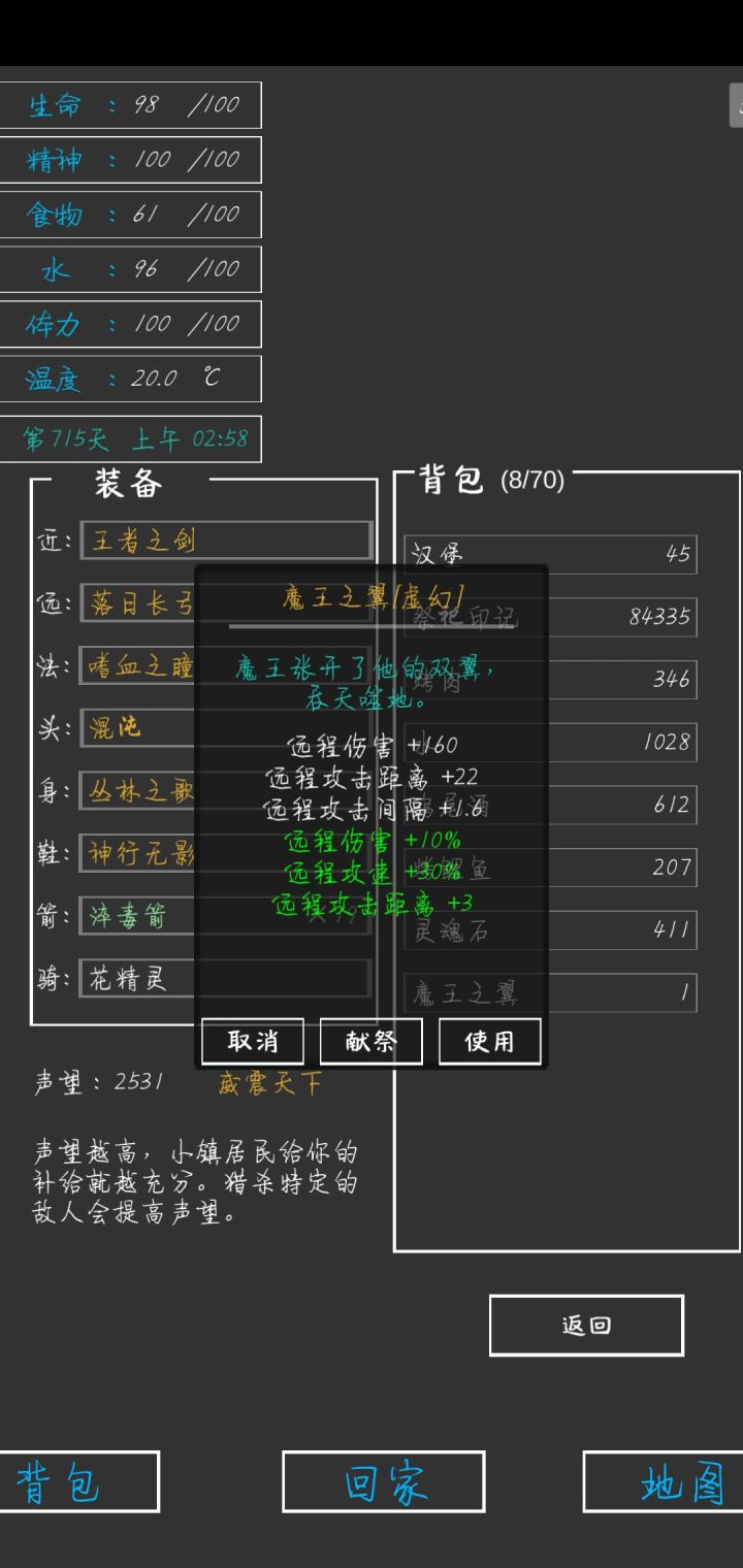 2有人说灵魂石很缺,但其实有办法刷的,在晚上,体力用完的情况下,一直点需要体力的工作,他会提示你体力不足,但是一直点的话是可以出幽灵的。并且操作过程中游戏时间不变,食物,水等属性都不会减少,并且幽灵血薄,基本近战一刀秒,不会扣血,顶多被偷袭稍微扣一点血,等于是仅拿极少量的被偷袭的血白