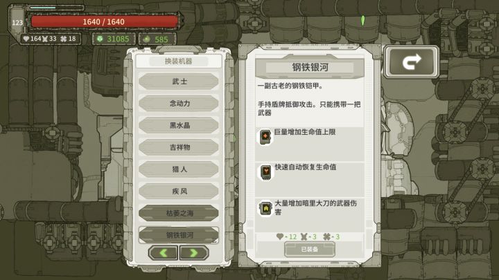 hhh楼主花了几天体验了这个游戏,总体感觉不错的,画风很喜欢,细节处理也很到位,很期待这个游戏在安卓的正式上架呢(。・ω・。)ノ♡(本期攻略仅供参考,主要是二周目的精英boss攻略)小建议:尽量用近战武器,因为子弹不易补充,推荐装备:钢铁银河+暗里大刀(能量剑也可以)钢铁银河建议芯片:生命上限+恢复生命+强化武器伤害(选钢铁银河意味着有很好的正面防御但是只能携带一把武器,所以建议配合近战