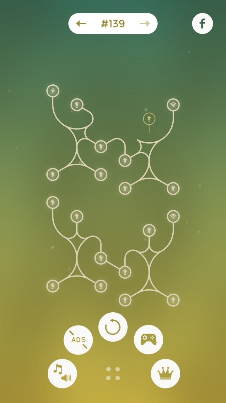 Loop energy这款游戏属于智力型休闲小游戏,考验玩家的记忆力,逻辑力和想象力。Loop energy的主题是”电路“,玩家需要将地图上散乱被切割的线路,搭建起来,连成通路。Loop energy这款游戏其实已经存在了很久了,每次都在上一版的游戏优化改版,经久耐玩。这一类型的游戏我最早接触是”管道工“虽然主题不一样,但是操作玩法基本不变,也是接连线路。 功能菜单1.音乐音效开关:头脑的