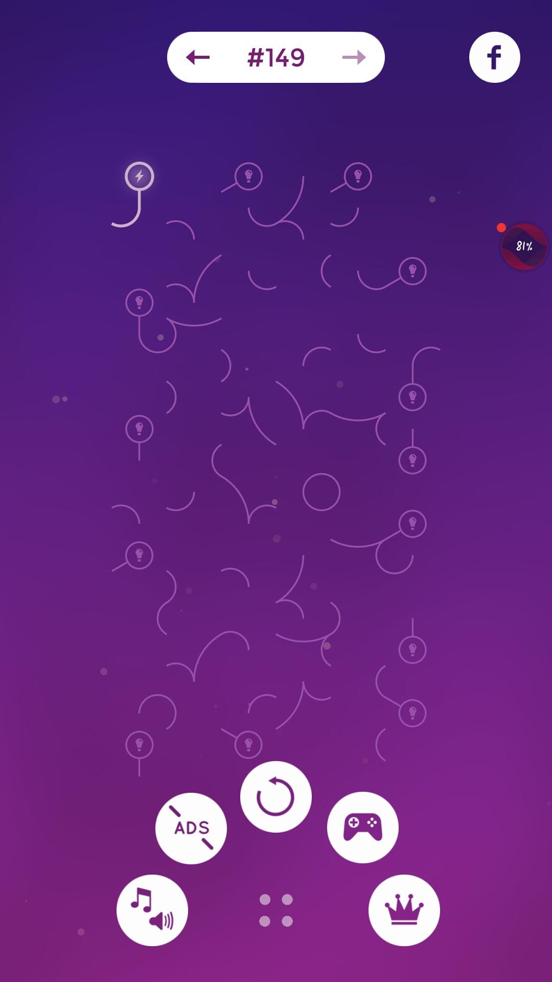 针于132关,一般人都会把所有的线用完,像这样但是有没有人思路换一下,把所有的灯点亮,是不是也可以,如果不信可以去试试看,这样也是可以的所以说这个游戏的潜意义不是把所有的线全部用完接上,而是把所有的灯点亮,那么我。。之前玩的思路全部被推翻了