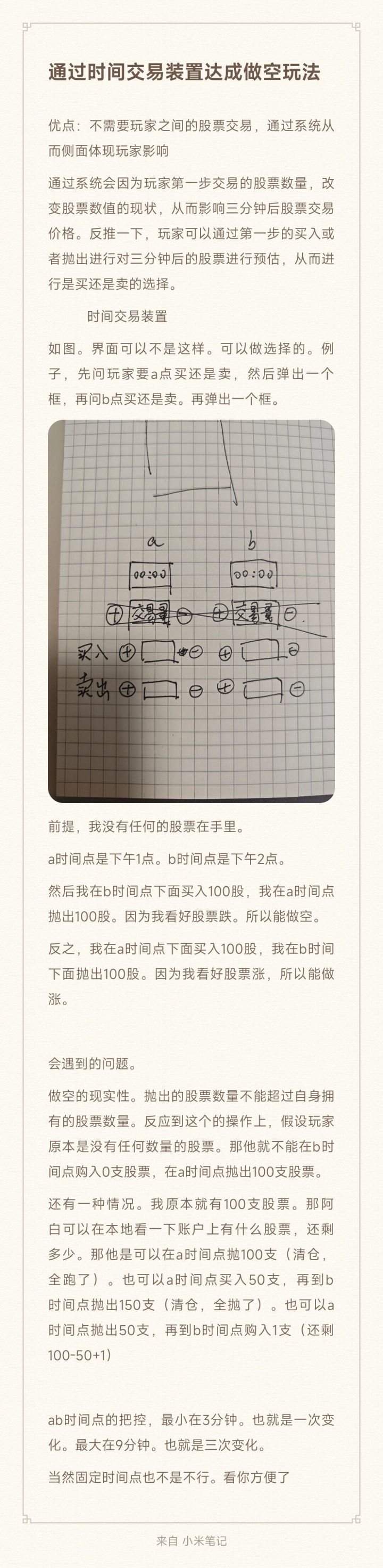 从玩这两天看,基本所有股票价格都在抬高,这样最后可能会出现1股二十多万,新人根本没法玩的问题。目前游戏好像是靠重置赛季来解决的,但其实可以考虑开放做空和增加高单价股票的拆股来解决,这样更贴近真实市场,附加个股价低于1元变st,股价连续一周低于一元退市就更有意思了