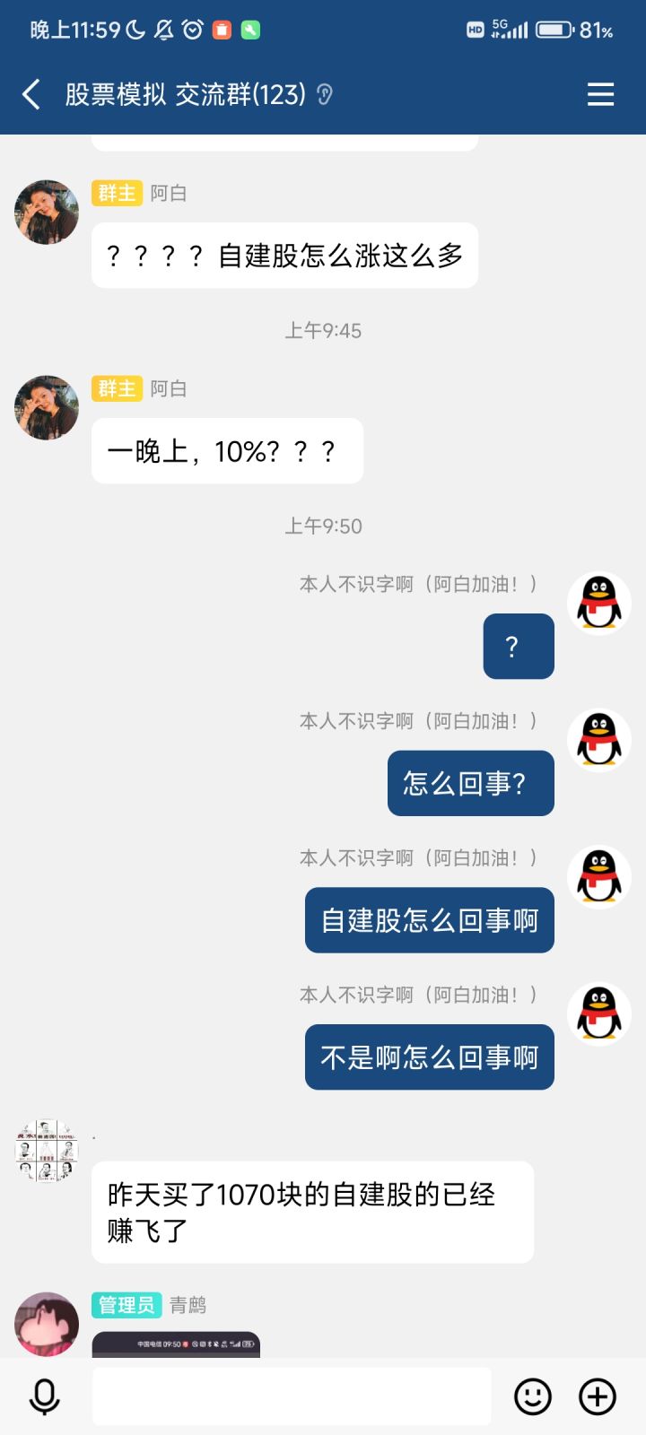 我是真没想到,就这样一个超级简单的游戏都能体现出信息差的重要性。我加了QQ群。然后阿白一说更新了《自建股0002》。我就马上下载并重仓了。(图1)之后我就成为了榜6(图2)给大家看一下真正的榜一大哥(伏羲)的股票仓(图3)伏羲大哥经历了很多次的数值重置。最后获得了这样多的股票伏羲大哥现在买股票都是看自己手指什么时候点累了就停