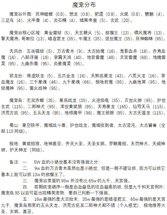 评论里可能我再更新一些魔宠和BOSS的属性图吧。魔宠怪物属性和拿到的宠物属性是不一样的,宠物属性会再弱一点。