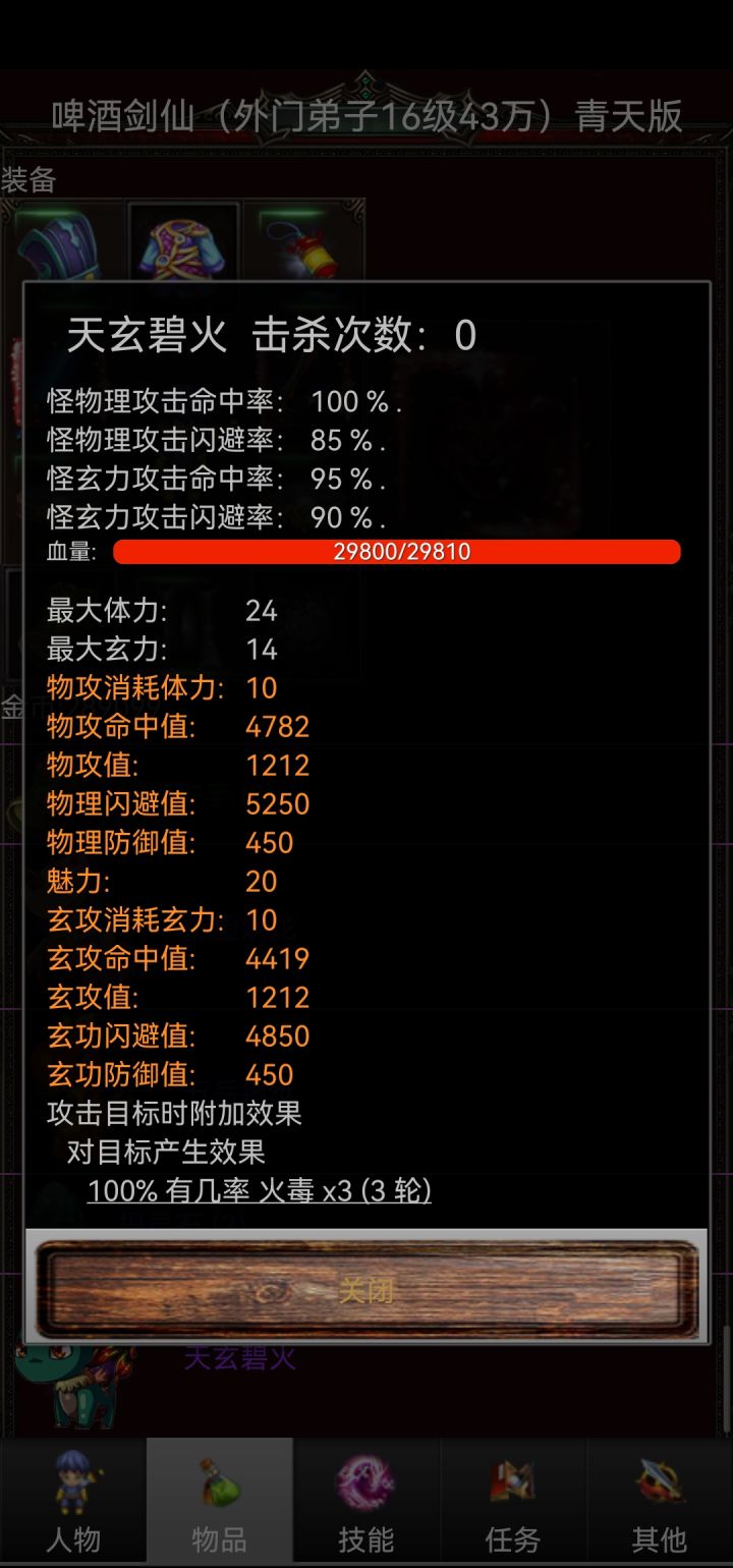 开始在商人里买两个玄攻戒指装备上新手剑就去刷蜂王,然后出什么装备都装上,新版本所有小怪都有概率掉落神秘宝剑,出门刷毒蛇掉衣服,愤怒猪掉鞋子,离线建议挂毒蛇和蜂王,加点体质和玄防对点就好,技能学地灵武防和地灵玄防互点,10级后抓个憋龙或死神螳螂去打绿龟,记得吃百年人参。然后升级刷肯石虫出个帽子就不用打了然后是抓魍魉玄防要1450,神秘宝剑,没有的就买五阳商人的青魔剑就是有点慢,抓完抓暗黑皇帝