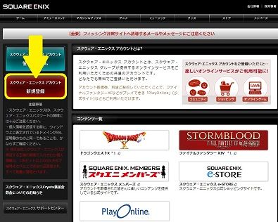 透過帳號綁定(引繼教學)的步驟,來保護你心愛的召幻獸A.官方網站會員申請B.遊戲內部綁定C.登入引繼帳號A.官方網站會員申請注意事項:虛擬IP位置可能無法審核過關及自備email信箱!![1] 連結至官方網站 www.jp.square-enix.com/account/[2] 點選建立新帳號(選擇黃色箭頭處)[3]填寫基本資料(填妥後請點選NEXT)[4]信箱認證(認證失敗的信