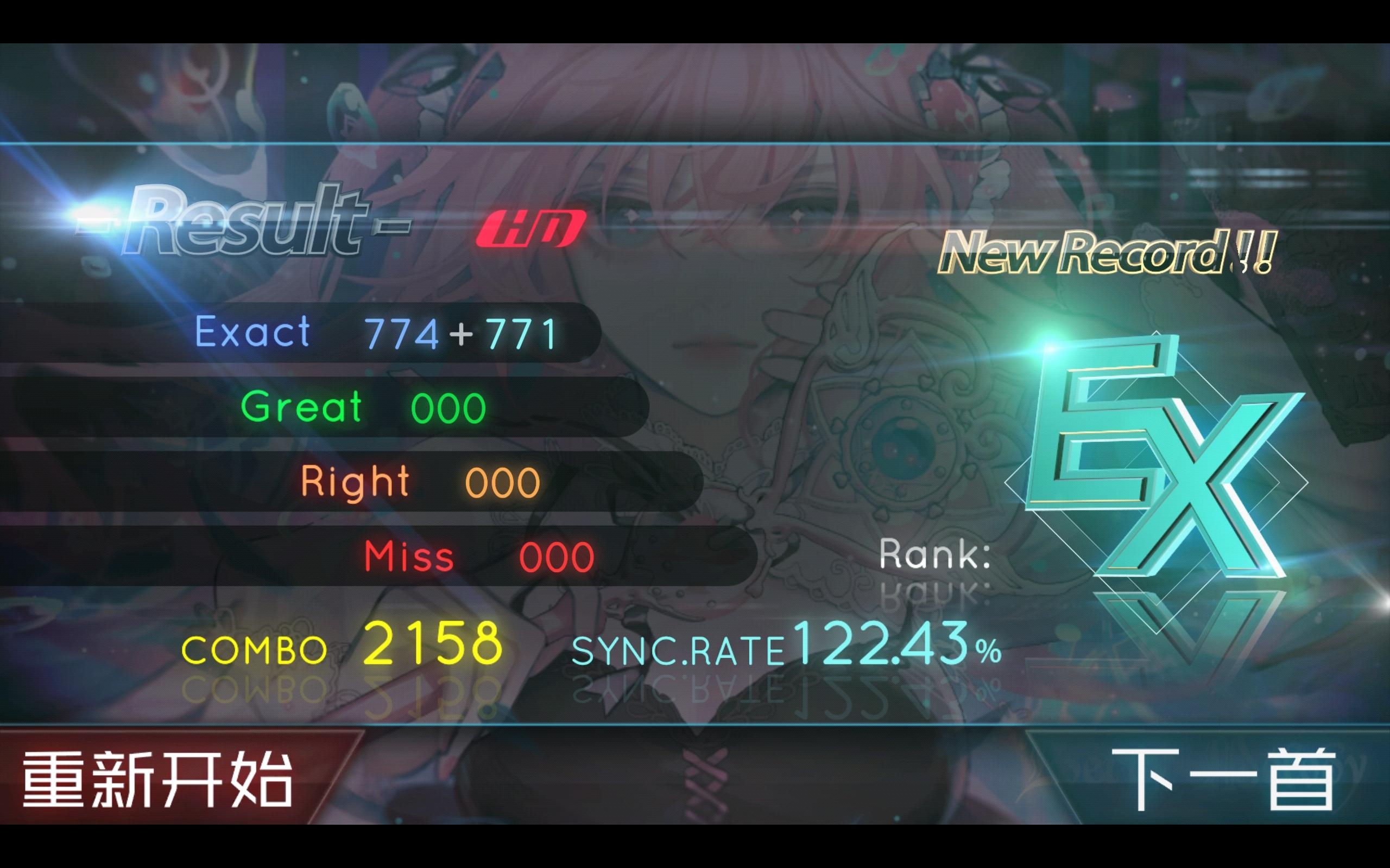 挑了难度7,一个多月没打生疏了,这是第三遍打的(不过以前也就只能FC吧,10难度的根本打不了)。感觉打起来听得很舒服的,应该是曲子本身就挺舒服的,妄想症系列yyds!另外这个居然是Full ver,挺好的!还有就是祝愿原曲长长久久地存活在B站!(PS. 第一遍编辑的时候打错名字了,我到底在干什么......在这里向原作者道个歉)