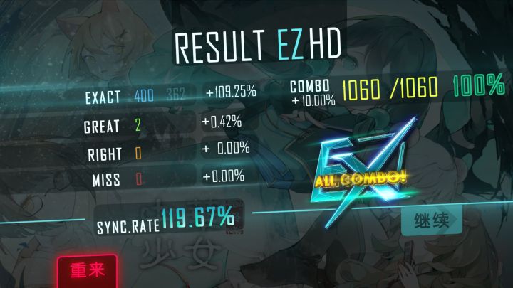 主要是受了朋友的影响来尝试一下6k,总不能在其它游戏里一直用4k的手法接5k的楼梯吧感觉和4k比就像是曲子相同的两款游戏,难度稍微高一点就根本接不住,就只好从难度2,3开始,三个指头和两个指头相比还是容易打架了(PS. 还存在鬼键问题,得调键位)前面几个图是高光现场,最后一张就是彻彻底底的翻车了#同步音律 #同步音律喵赛克