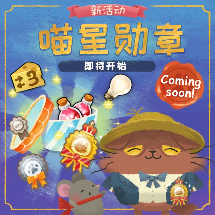 听说,连续通关就能获得喵星的勋章?!连续挑战普通关卡,即可获得有利条件通关哦!剧情落后的喵粉们,快趁这个机会推进你和尼果的故事吧!