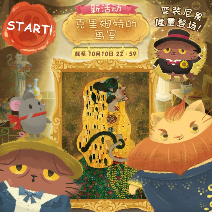 新活动『克里姆特的画室』来啦!尼果他们在克里姆特的画室里究竟做了什么?!把克里姆特引以为傲的作品搞得面目全非......他们可以将画作清理干净,安抚盛怒之下的克里姆特吗?一起来玩消消乐,帮助他们吧!另外,本次活动还有《榜单头条》环节闪亮登场哦!在活动关卡使用【颜料炸弹】,即可获得积分!积分排名显著的玩家,可以获得给尼果换衣服哦!!完成全部通关以后,还可以重复玩呢!快去使用颜料炸弹攒积分
