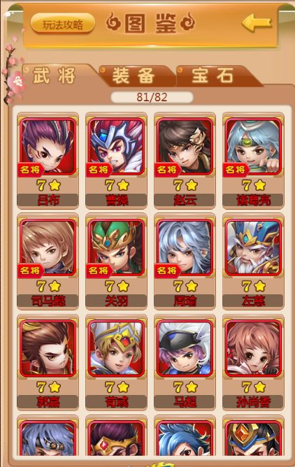 宝石相比装备和武将,就非常难获取了,目前最实用的方法就是寻宝功能(45级开启),可千万保护好自己的元宝,别把元宝都刷没咯v1-v8:五星宝石v9-v13:六星宝石v14及以上:七星宝石温馨提示,因为宝石比较难获取,所以更换宝石是一个长期过程,可不要急着换,建议使用稀有宝石(贪狼,破军,千机,七杀)前期它的优势不是很明显,到后期,一个7星普通宝石可能都比不上2星稀有宝石!宝石一点