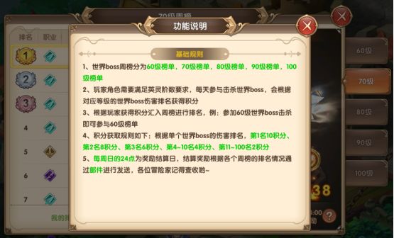 前两天,对《宿命契约》活动日历的限时副本做了个盘点;不知道各位宿命大人是否感觉到宿命的限时活动真的很多很多?每天需要花大量时间去刷副本,不过副本掉落的道具,给予的回报也是挺大。今天我们来看看盘点一下世界BOSS都有哪些?都掉落什么道具?世界BOSS分别有50级、60级、70级、80级、90级、100级六大等级世界BOSS,每个等级副本掉落的道具基本差不多,主要看各位宿命大人的战力和能力如何,周榜