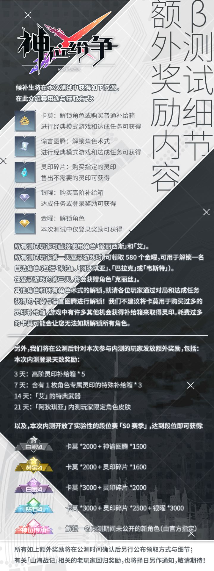关于本次测试的奖励细则和FAQ: