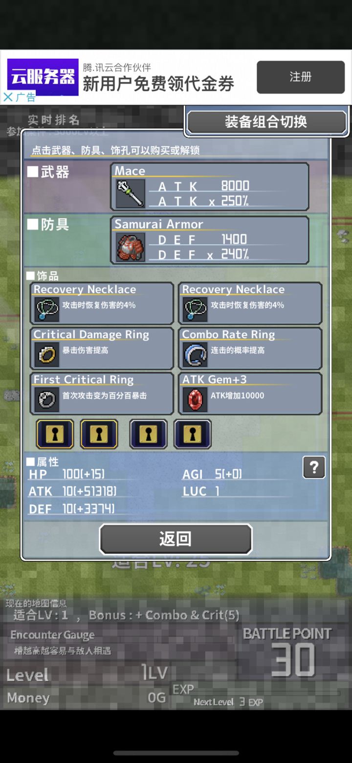 玩了一天打到一万多级卡住。看了一下大佬说要在2222刷吸血,大概半个小时刷了两轮掉了两个吸血和一个加连击的手镯。出门(带3个加经验)先往上走打750级的boss,(血和防对半点)打完继续往上把2300的boss打了,这个时候步数还有30步左右。(换成加幸运+一个加移速;这时候开始全点幸运)然后再回到出生点往右走,2到3步走到2222开刷。这个地方有三块,左上(1333),右上(1222),下(