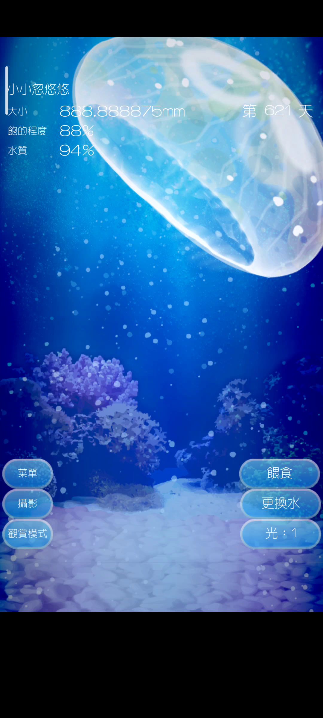 大家好,第一次在tap当游戏博主好激动qwq 这个养成游戏比较简单,算是入门级别的,但是要记得定时喂食和换水不然水母会死掉,满足了现实中没养水母的遗憾!😍