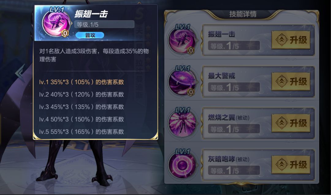 各位斗士在上一期关于拉达的策划答疑里已经对他有了个大致了解,但贵鬼知道这一定无法满足大家的好奇心,所以趁热打铁,赶紧为你们带来这一期的拉达曼迪斯的技能攻略。 作为从冥界而来的第二位冥斗士,被称为物攻机关枪的拉达曼迪斯又有什么特殊之处呢?让我们抢先一步来了解一下。 一、技能机制 1. 振翅一击(普攻): 对1名敌人造成3段伤害,每段造成35%(满级55%)的物理伤害。 2.最大警戒(0费群攻): 原