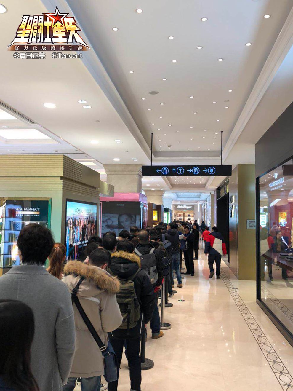 冷冷冷啊! 周末的魔都温度 就像卡妙的水瓶宫 但是来到南京路上的大丸百货 一股燃烧小宇宙的热量扑面而来 关于《圣斗士星矢》三十周年巡展的细节或许大家都已经了解,但巡展首个周末火爆异常的现场你知道么? 来不及解释,快上车感受一波! 蜿蜒长队史无前例 偌大的大丸百货瞬间被粉丝们的热情填满,队伍从一楼排到了六楼。 这位斗士稍安勿躁,喝口热茶慢慢蓄力小宇宙。 守护女神的斗士们前赴后继,带上娃儿一起继承