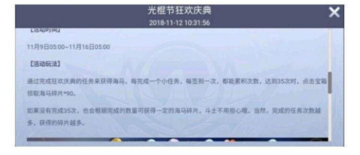 首先,大家要知道,虽然活动没有说明,但是通过贵鬼小助手查询可以知道,海马的碎片和逆鳞紫龙一样,是按照你任务完成的熟练折算成对应比例的碎片给你的,不是说全部完成才有碎片。(贵鬼小助手这个功能挺好用的)按总进度的百分比完成, 比如你完成34个任务,就按34/35*90碎片=87个碎片。前期还有一些零星的任务也给了不少碎片(粗略估算在13~15个左右),所以是肯定能出的。其次,其他任务条件都比较简单