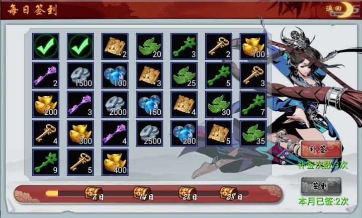 哎哎前边的让让,小编来打卡签到了~上班的、上学的各位亲,今天在公司打卡了吗,在学校点到了吗?什么?你要问我每天打卡点到有什么用?嘿嘿,那用处可大了!想拿全勤奖还是想被扣工资?想领奖状还是被老师叫家长?那当然是选择前者啦!我们斗转武林每日签到也是一个道理的,有奖励哇!而且还可丰富了呢。不仅有藏宝图,翡翠叶子,钥匙,元宝,内丹,钱币等道具免费领,而且奖励的数量还是日益增多的呢,只要签个到就能够获